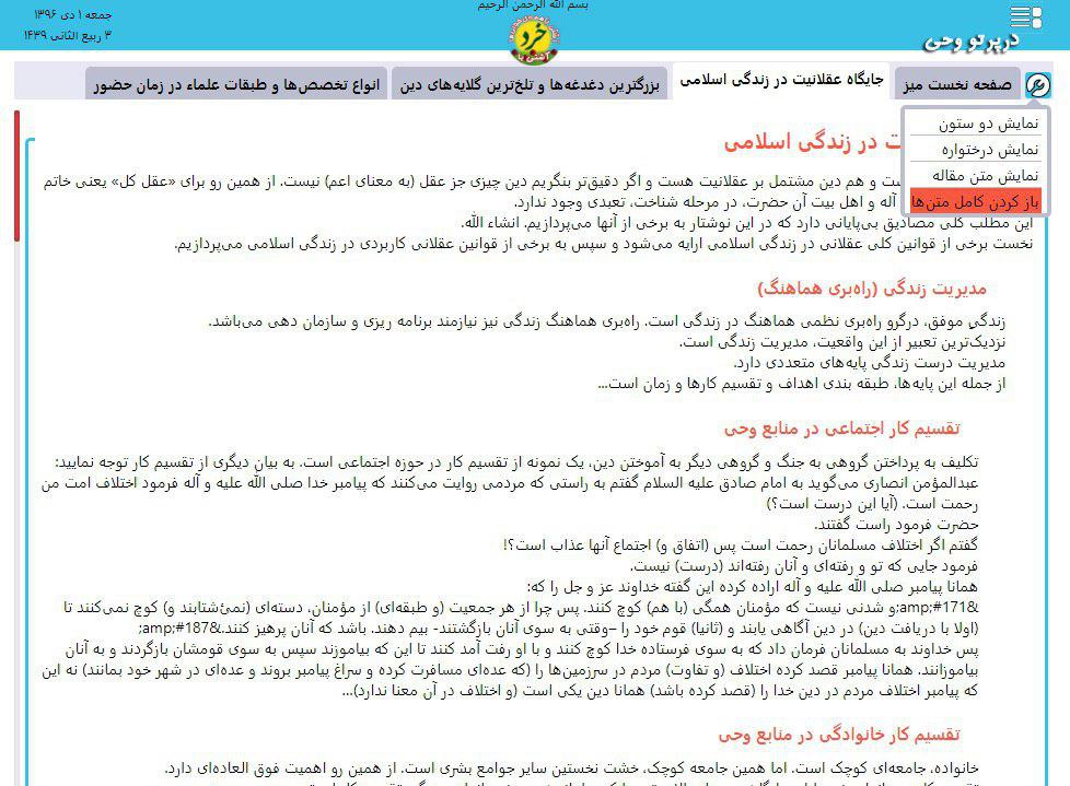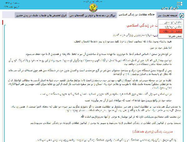اما عملکرد گزینه سوم دقیقا بر عکس گزینه دوم است. یعنی با انتخاب «نمایش متن مقاله»، درختواره پنهان شده و تنها ستون متن مقاله نمایش داده میشود. (تصویر شماره 3)